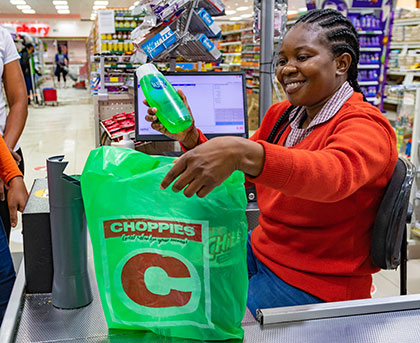 We pride ourselves on providing value for money and a happy shopping experience to customers and communities across southern Africa. Our product offering spans food, groceries, tobacco products, beauty products and other general merchandise as well as value-added financial services. With many of our stores located in small rural areas, to suit every budget, we offer an extensive range of private label Choppies products alongside well-known brand products.